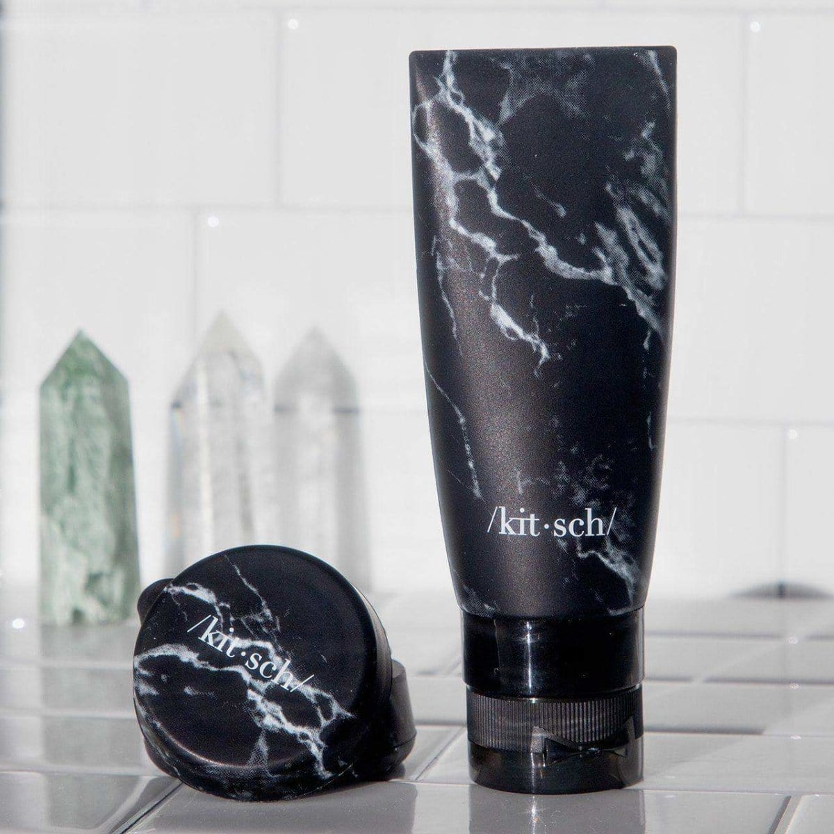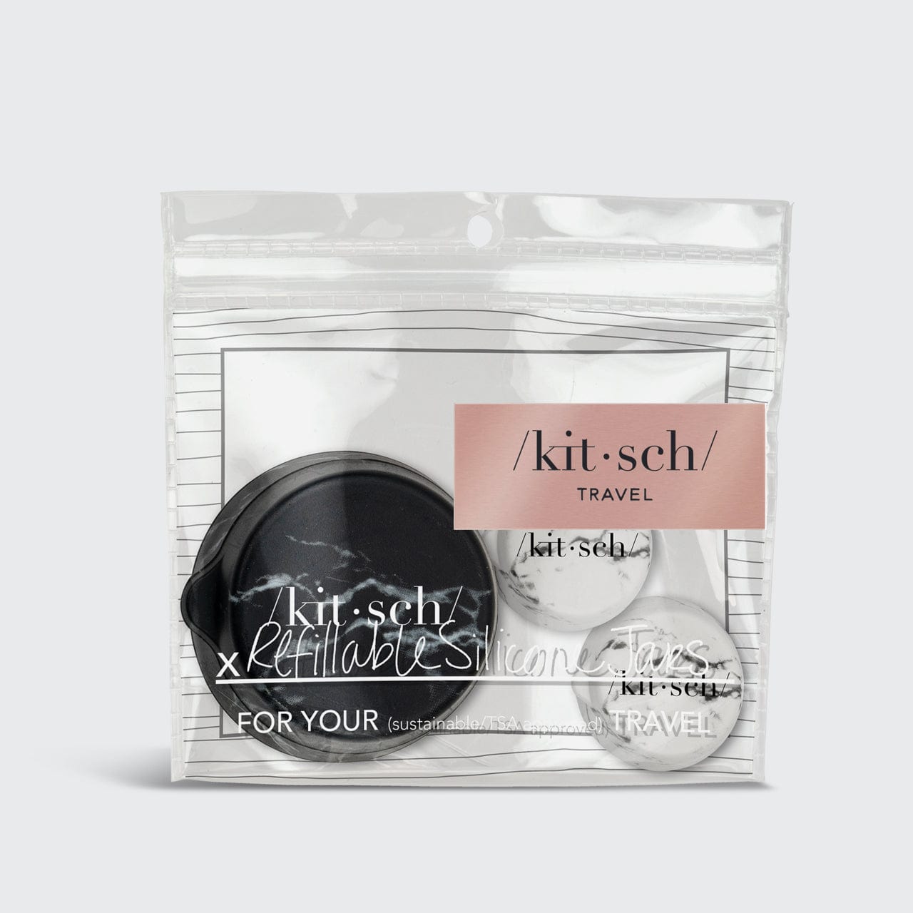 3pc Silicone Travel Jar Set – Black / White Marble