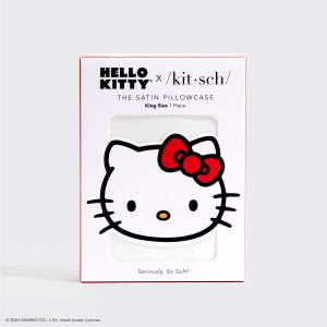 Say hello to hair’s best friend. this satin pillowcase embroidered with Hello Kitty’s iconic red bow for a night of sweet dreams and adventures.